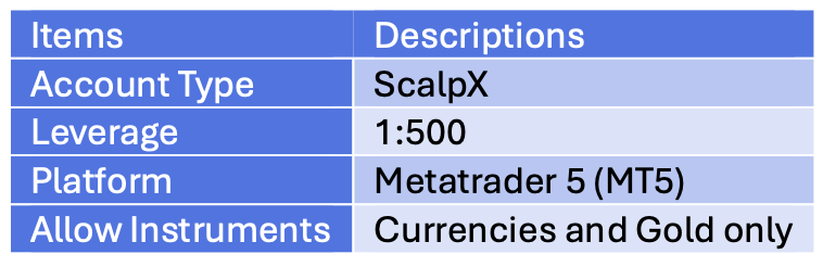 - Participants found to have more than one (1) active contest account at a time defined as an account with open positions or ongoing trades will be disqualified from the contest